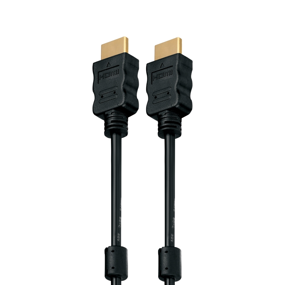 High Speed HDMI Kabel mit Ethernet Kanal (HEAC), vergoldeten Kontakten und 2x Ferrite Filter. HDMI A Stecker (19pol) auf HDMI A Stecker (19pol). Zweifache Abschirmung. Länge: 0,50m