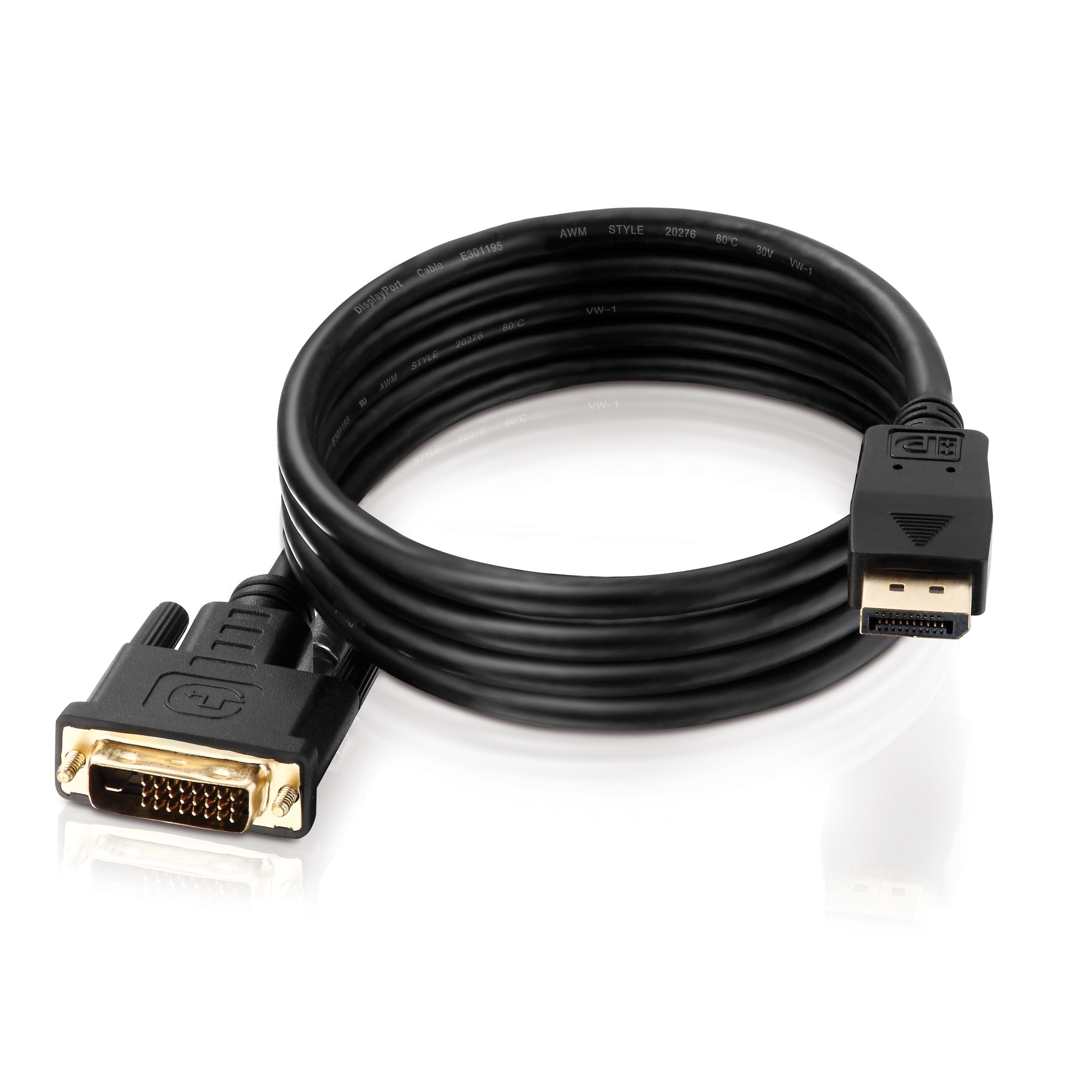 Die HDSupply DisplayPort zu Dual-Link DVI (24+1) Verbindungskabel liefern perfekte Leistung zum kleinen Preis.UniversalUniverseller Einsatz mit jeglichen DisplayPort Quellgeräten - Das DisplayPort auf DVI Verbindungskabel kann z.B. an den DisplayPort Ausgang Ihres Notebooks, PC, BluRay Players, etc. angeschlossen werden und überträgt das Signal an ein kompatibles DVI Anzeigegerät, wie z. B. Fernseher, Monitor oder Projektor.Die Verbindungskabel können mit Geräten und Komponenten verwendet werden, die über einen kompatiblen DisplayPort bzw. DVI Anschluss verfügen, wie z. B. Fernseher, TV, Plasma, LCD, LED, OLED, TFT, PC-Monitor, Beamer, PC, Computer, BluRay Player, Media Streamer, etc.VerlustfreiDie vergoldeten Steckkontakte sorgen zum einen für eine verlustfreie und perfekte Signalübertragung für Auflösungen bis zu 1080p / FullHD und zum anderen für dauerhaften Korrosionsschutz und somit eine verbesserte Langlebigkeit.Dank hochwertigen Innenleitern gelingt die unverfälschte Signalübertragung ohne unerwünschte Einflüsse.Produktinformationen- DisplayPort auf DVI-D (24+1) Verbindungskabel- Anschluss 1: DisplayPort Stecker (20pin), male- Anschluss 2: DVI-D Dual-Link Stecker (24+1pin), male- Max. Auflösung: 1080p / FullHD- Vergoldete Stecker- Farbe: schwarz