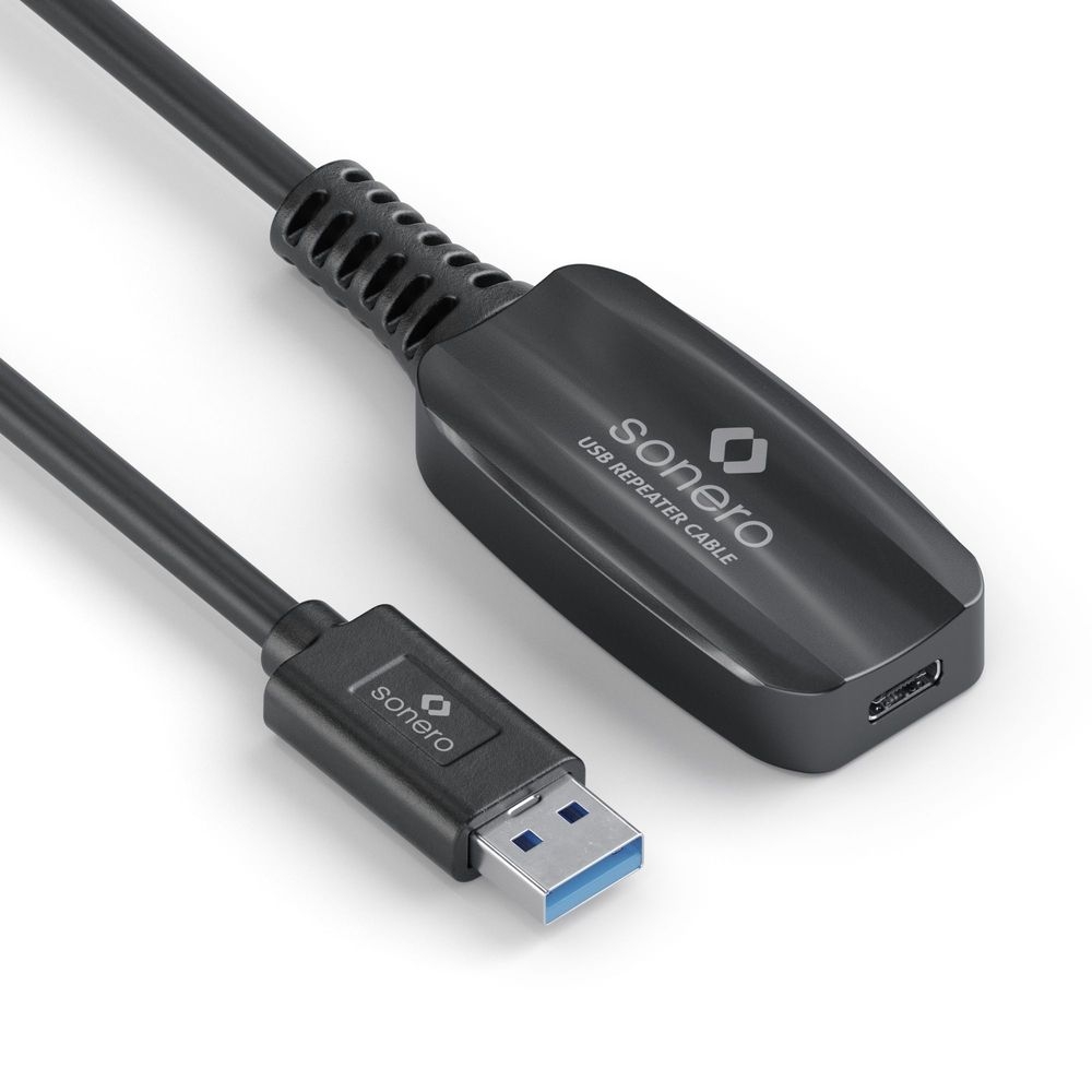 sonero USB 3.2 (Gen 1x1) Aktives Verlängerungskabel, USB-A auf USB-C - 5,00m, schwarz