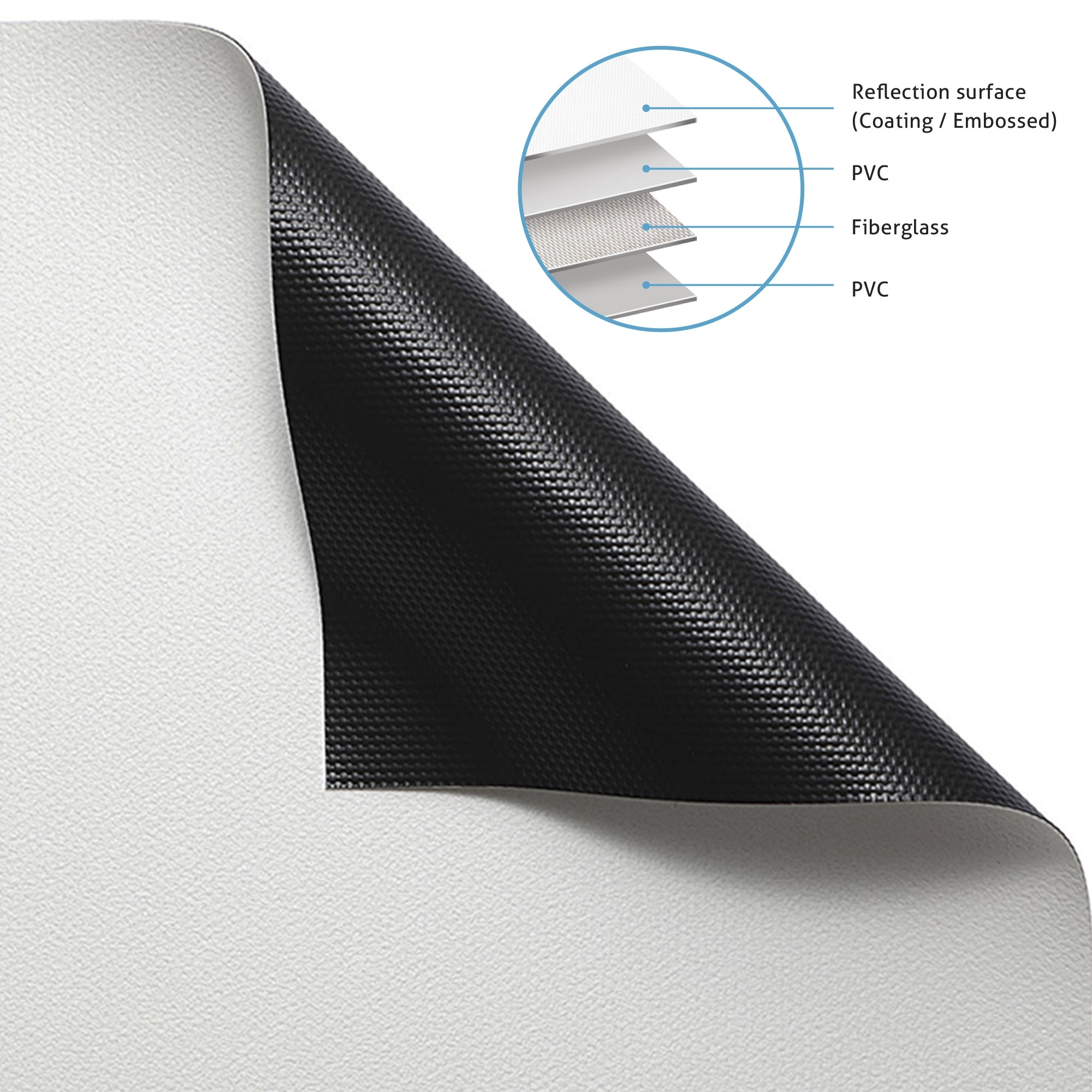 | Langlebiger Leinwand-Stoff mit vierschichtigem Aufbau einschließlich Glasfaser mit einer Dehnung von <1% - Auflösung von mehr als 125 Zeilenpaaren pro mm, für eine perfekte Schärfe - Präzise Farben durch gleichmäßige Verteilung des reflektierten Lichts - |