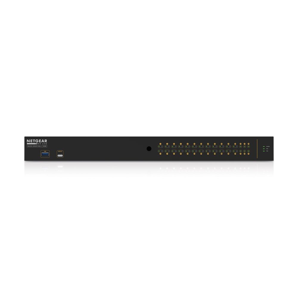 24 PoE++-fähige Ports: 24 der Ethernet-Ports liefern Power over Ethernet Plus (PoE++), wodurch kompatible AV-Geräte sowohl mit Daten als auch mit Strom versorgt werden. Dies reduziert die Komplexität der Verkabelung und erleichtert die flexible Platzierung der Geräte.
