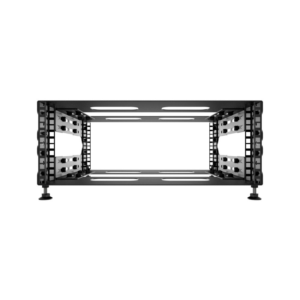 • Großer Rack-Einheitenbereich: Der Rahmen bietet Platz für Geräte von 4 bis 18 Rack-Einheiten und ermöglicht so Flexibilität sowohl für kompakte als auch für erweiterte AV-Systemkonfigurationen. Dieser Bereich ermöglicht die maßgeschneiderte Installation von Signalprozessoren, Verstärkern oder Steuerungshardware innerhalb einer einzigen Struktur.
