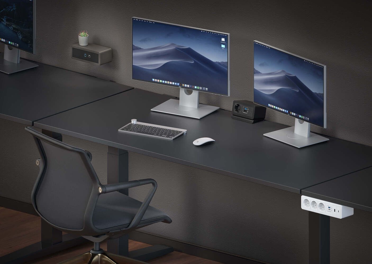 For mounting under desks, under shelves or even at wall/sides of desks |