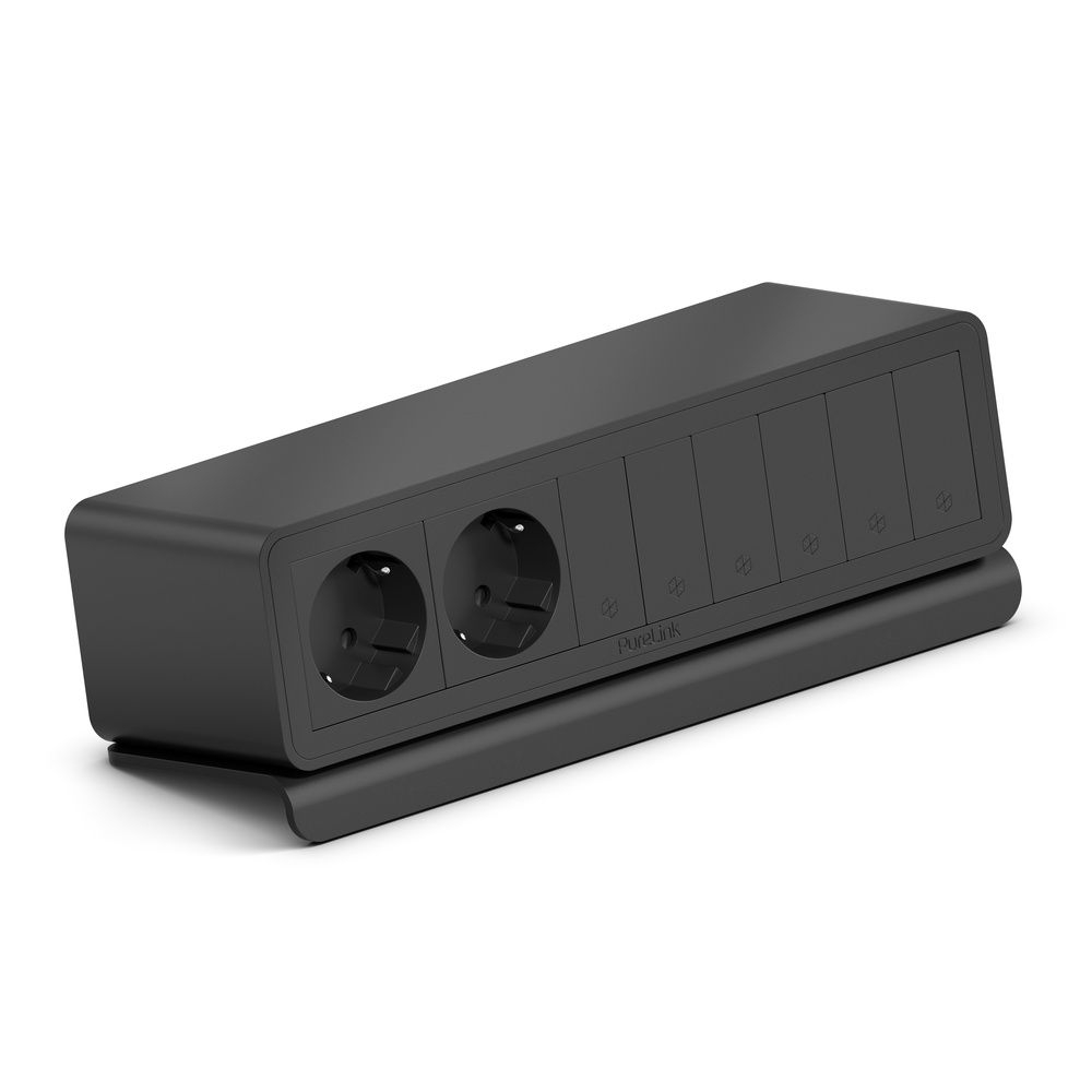 - Voorgeconfigureerd met twee AC-uitgangen en zes lege modules: Wordt geleverd met twee Europese DE (CEE 7/3) AC-uitgangen, 45° gedraaid voor eenvoudigere toegang voor de gebruiker, voorgeïnstalleerd samen met bijpassende afdekplaten. Direct te gebruiken en later uit te breiden met ICS-gebaseerde AV-modules.