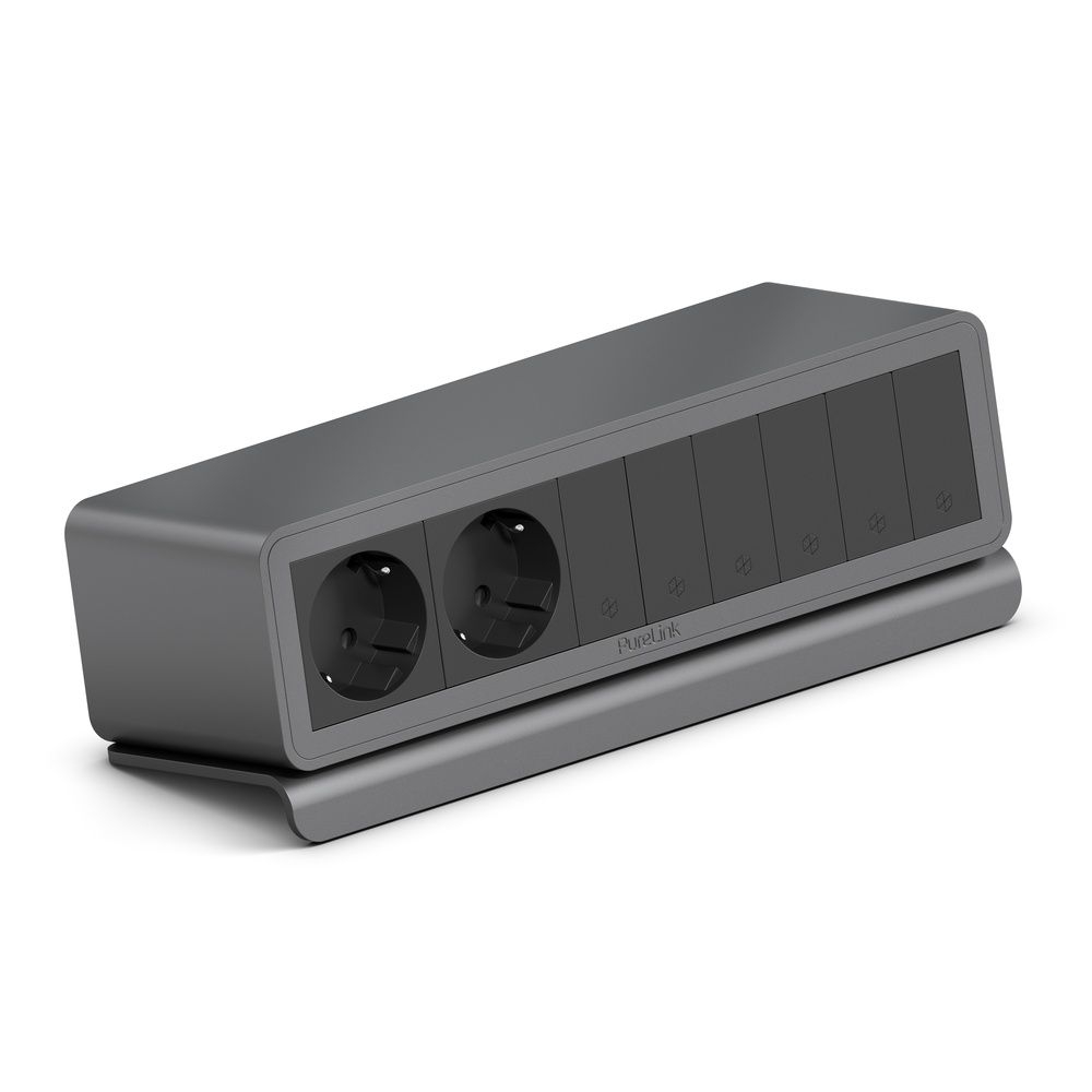 - Voorgeconfigureerd met twee AC-uitgangen en zes lege modules: Wordt geleverd met twee Europese DE (CEE 7/3) AC-uitgangen, 45° gedraaid voor eenvoudigere toegang voor de gebruiker, voorgeïnstalleerd samen met bijpassende afdekplaten. Direct te gebruiken en later uit te breiden met ICS-gebaseerde AV-modules.