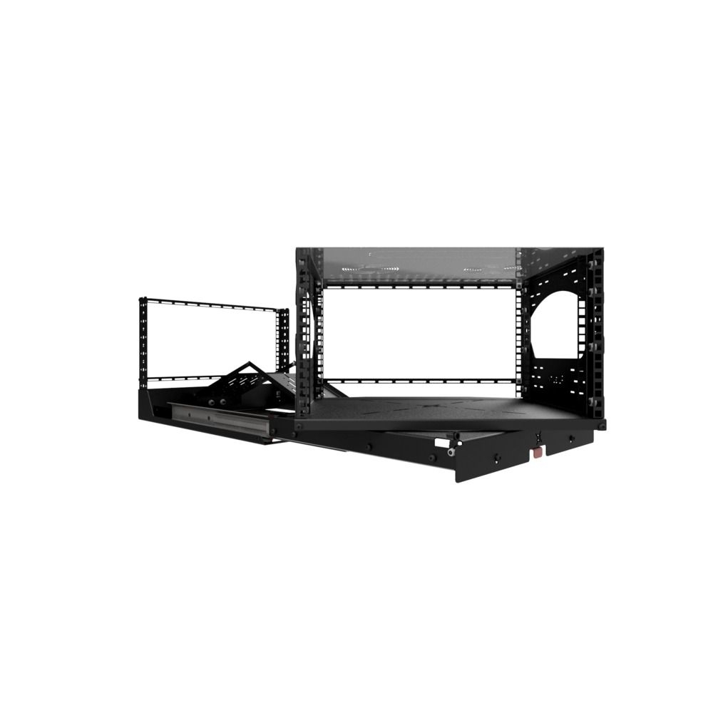 19" uittrekbaar en roterend stellingsysteem met een capaciteit van 120 kg. 6RU